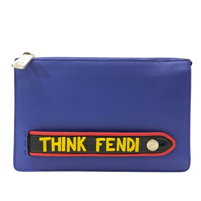 - FENDI フェンディ THINK FENDI ボキャブラリー ポシェット 7VA350 AO1N カーフ ブルー クラッチバッグ