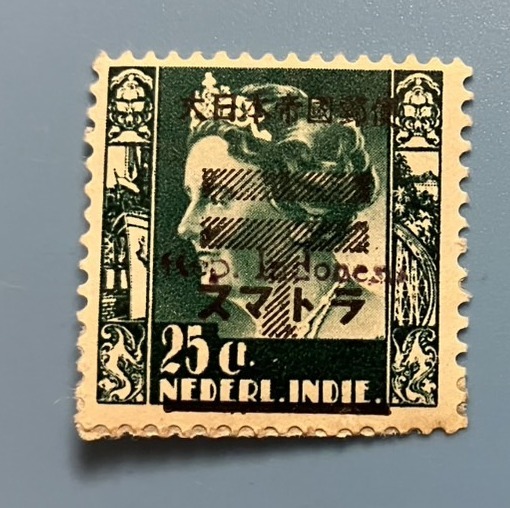 - 南方占領地 切手★オランダ領インド 女王 25c 大日本帝国郵便・インドネシア独立臨時 加刷 裏紙付き ヒンジ跡 未使用