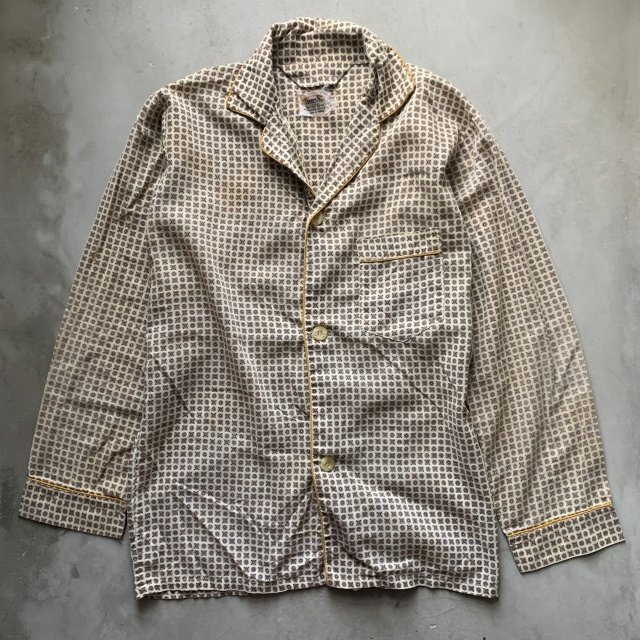 - 【S】70s CAMPUS ボックス 長袖パジャマシャツ 総柄 小紋柄■ビンテージ オールド レトロ アメリカ古着 キャンパス
