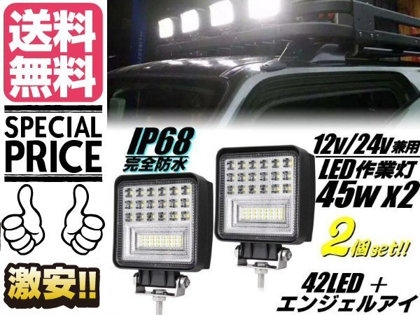 > 12v 24v 2個セット 広角 防水 45w 白色 LED エンジェルアイ ワークライト 作業灯 投光器 フォグランプ 船舶 レッカー トラック 送料無料/4