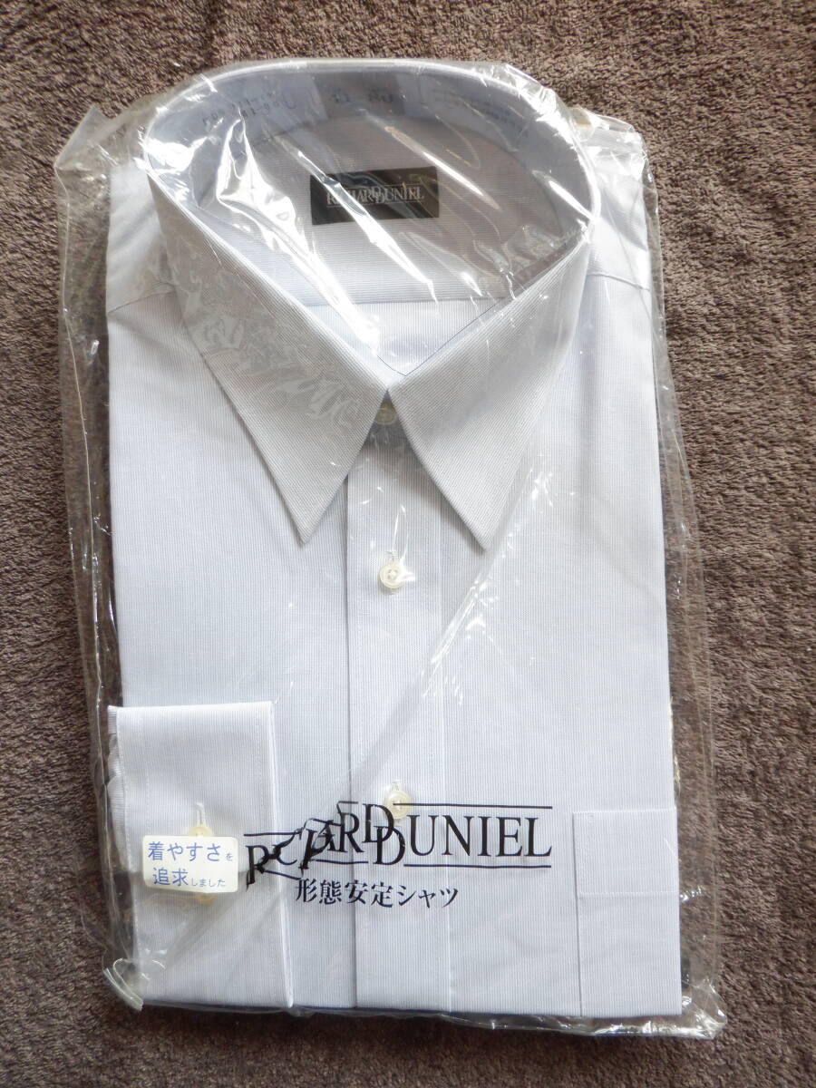 > RICHARD DUNIEL 長袖 ドレスシャツ 形態安定シャツ グレーのピンストライプ 41-80 Mサイズ 新品 未開封品
