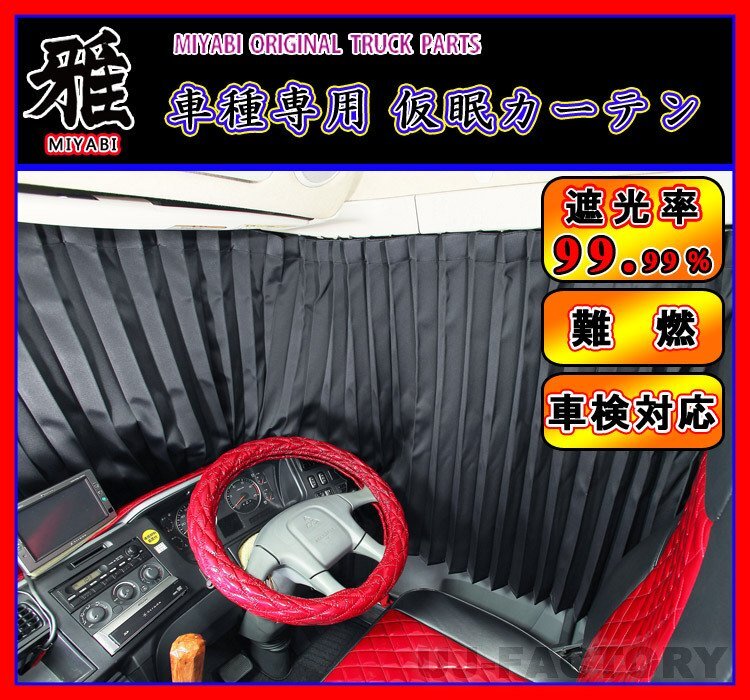 - 【MIYABI/車検対応】★ 仮眠カーテン 日野・グランドプロフィア★ブラックx2枚組 フロントガラス/ドア窓/安全窓までフルカバー!