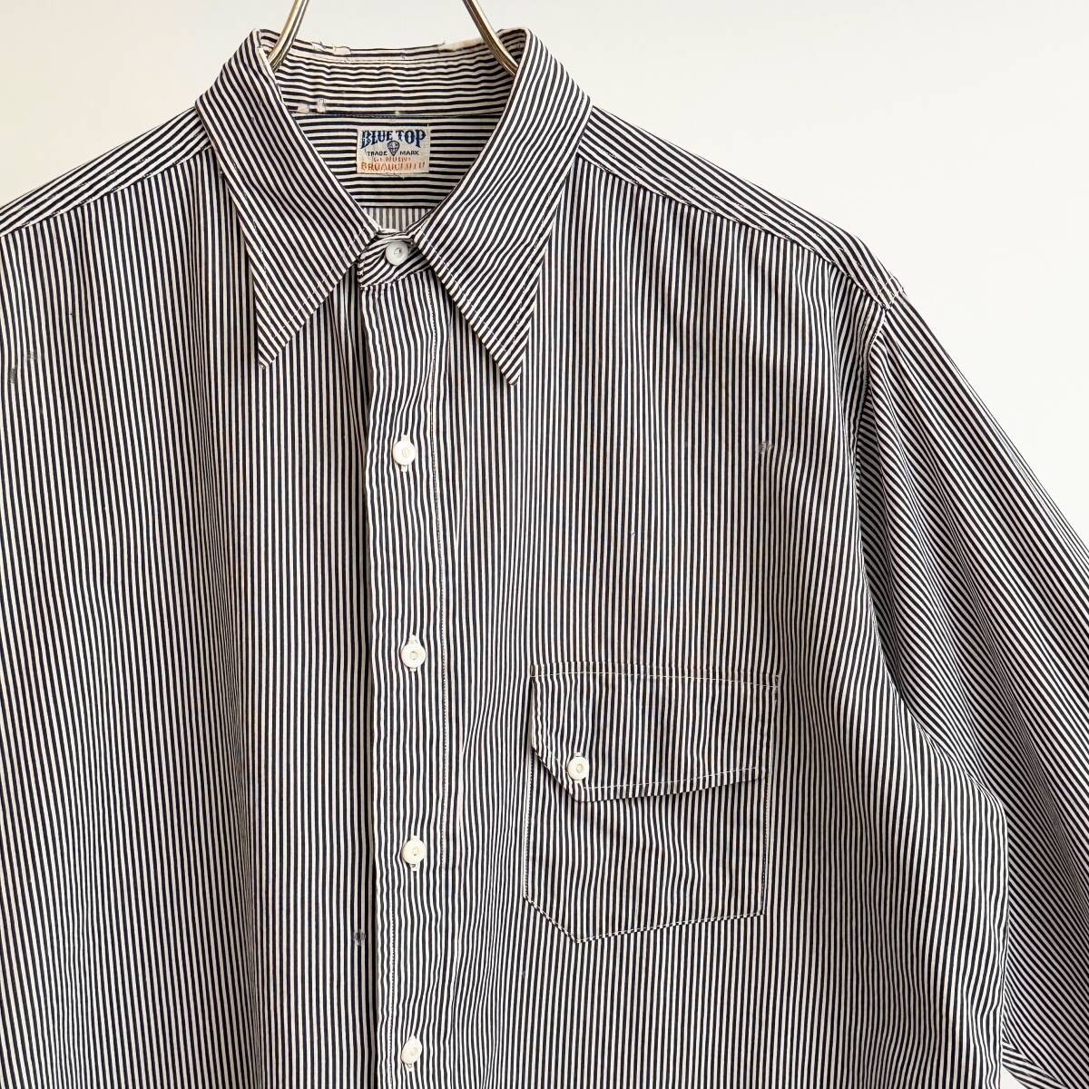 > 希少《 Rare / Blue Top 》30s 40s【 ビンテージ ブロードクロス 変形 ストライプ コットン シャツ 】