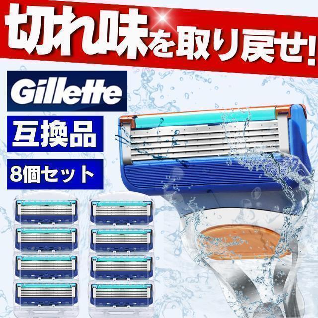- ジレット フュージョン 互換品 5枚刃 替刃 8個 髭剃り カミソリ ブルー