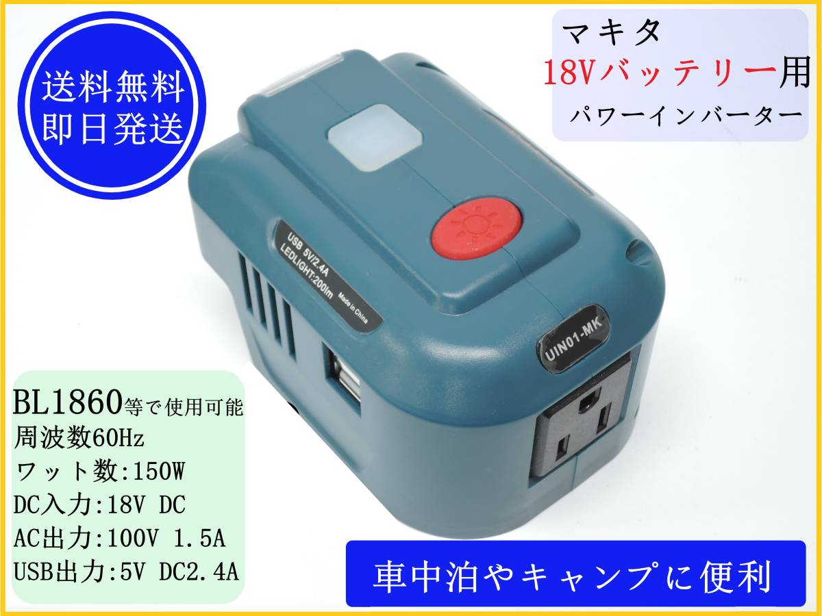 > 【送料無料/即日発送】 マキタ 18V バッテリー用 パワーインバーター USBポート 100Vコンセント LED 車中泊 キャンプ 停電対策 BL1860 ②