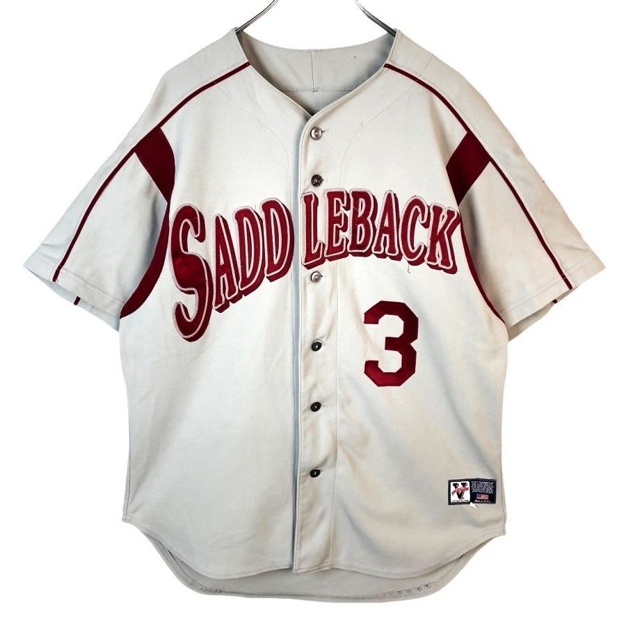 - USA製ヴィクトリーVICTORYベースボールシャツゲームシャツユニフォーム野球BASEBALLベースボールワッペンナンバリング灰色グレー赤41118