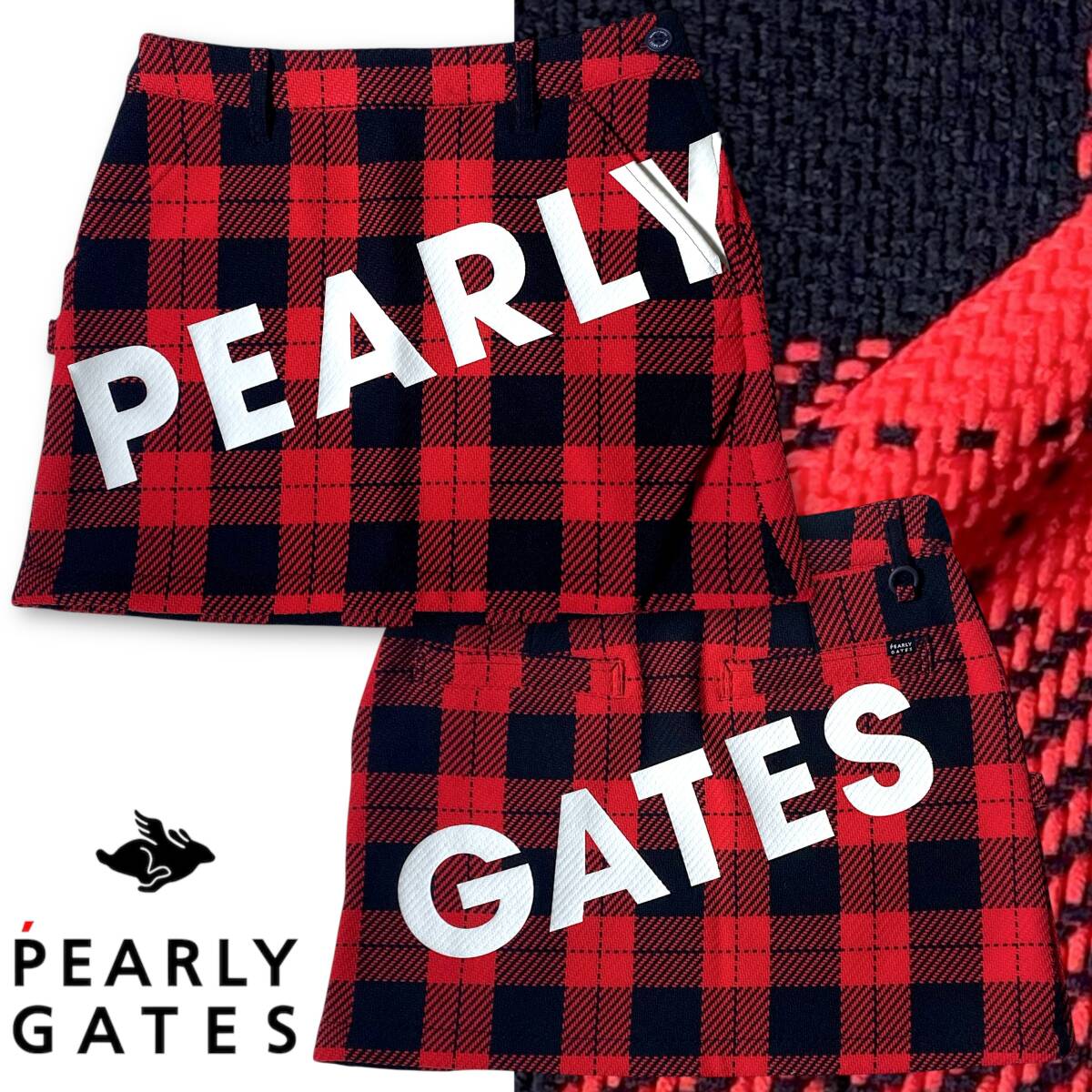 - 【2】新品 定価3.5万 パーリーゲイツ バスケット織 ビッグロゴ エステルツイード ブロックチェック スカート PEARLY GATES ゴルフ◆R2454