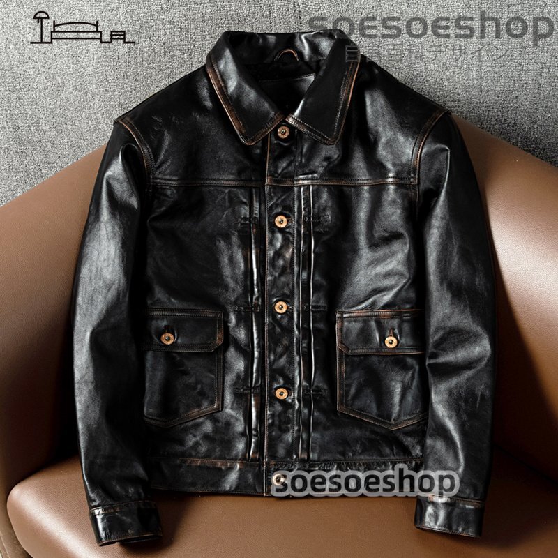 - レザージャケット 茶芯 馬革 ライダース レトロ ホースハイド 本革 メンズファッション 革ジャン バイクレザー ホースレザー S~5XL