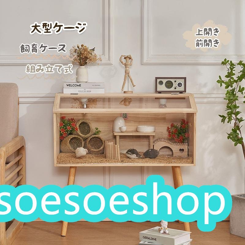 > 大型小動物ケージ ケージ 80*40*40cm 組み立て式 上開き 前開き おしゃれ アクリルケース 木 ハムスター 飼育ケージ