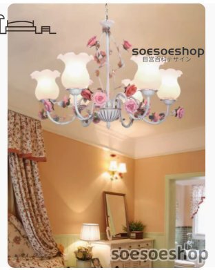 - 可愛いアンティーク調・薔薇シャンデリア 天井照明器具 花柄 ローズステンド