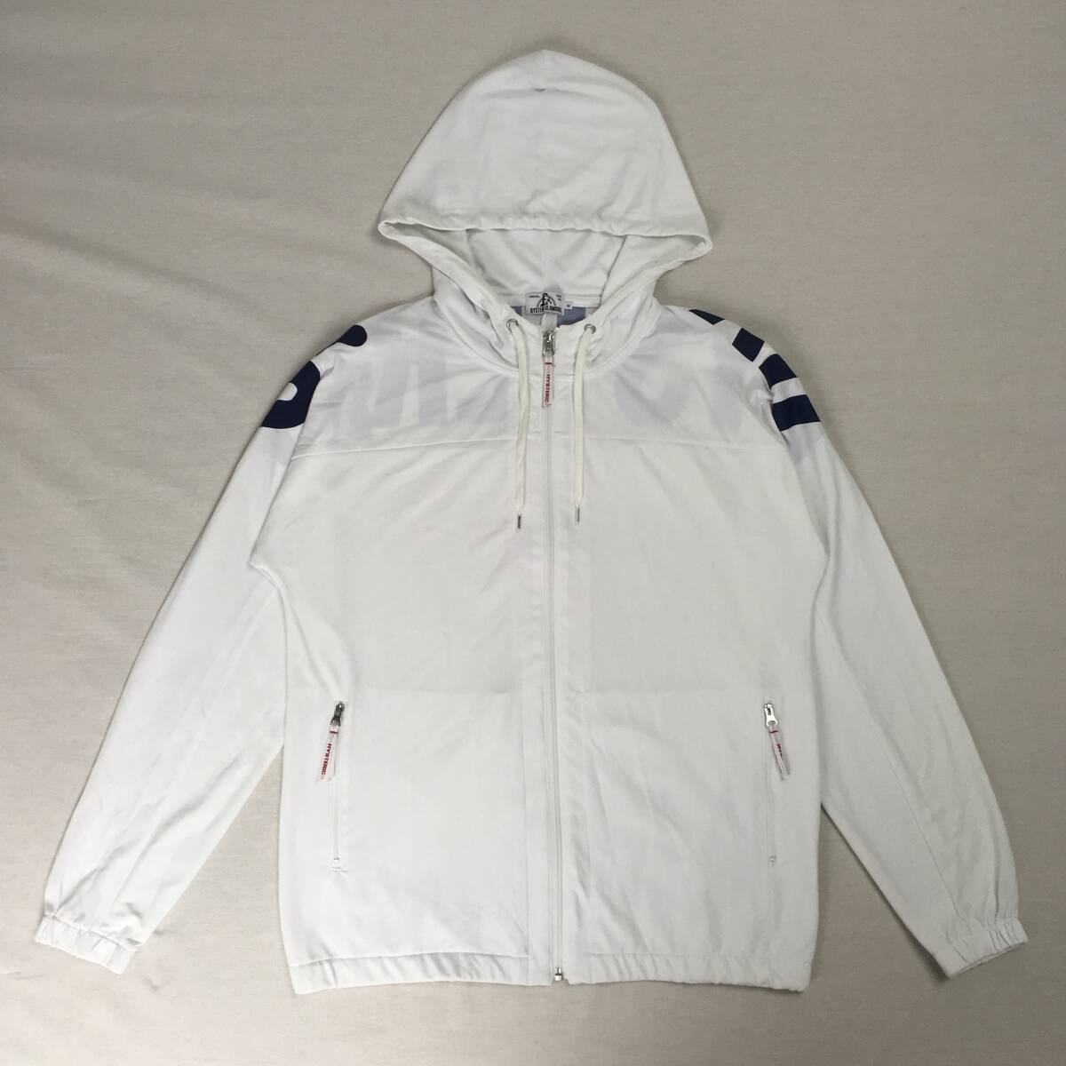 > 【美品】HYSTERIC GLAMOUR ヒステリックグラマー LOGOプリント メッシュジップアップパーカー 日本製 Mサイズ ホワイト/ネイビー 02182CF03