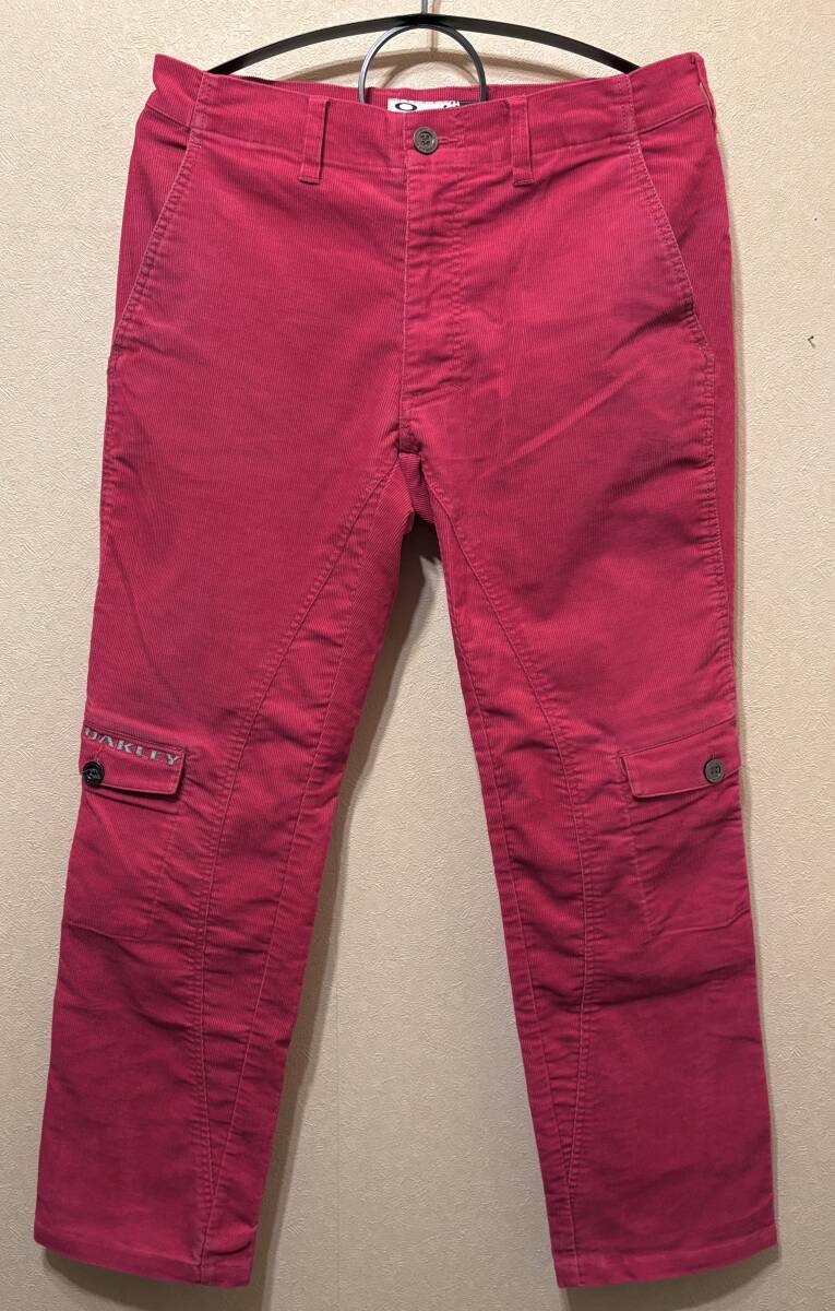 > Lレア色00sオールドOAKLEYコーデュロイ細畝パンツW33カーゴ6ポケット切替デザイン赤ピンク希少カラー00年代2000sオークリーy2kビンテージ