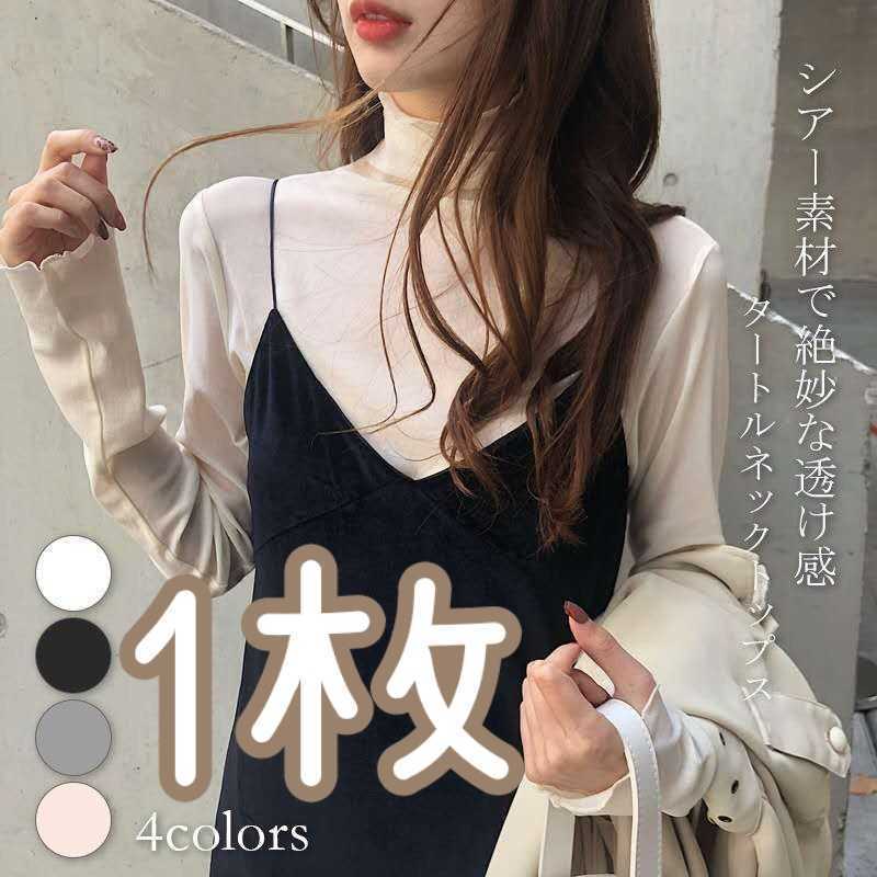- ハイネック シアー シースルー トップス ベージュ タートルネック 長袖 シアーシャツ シアートップス おしゃれ フリル インナー