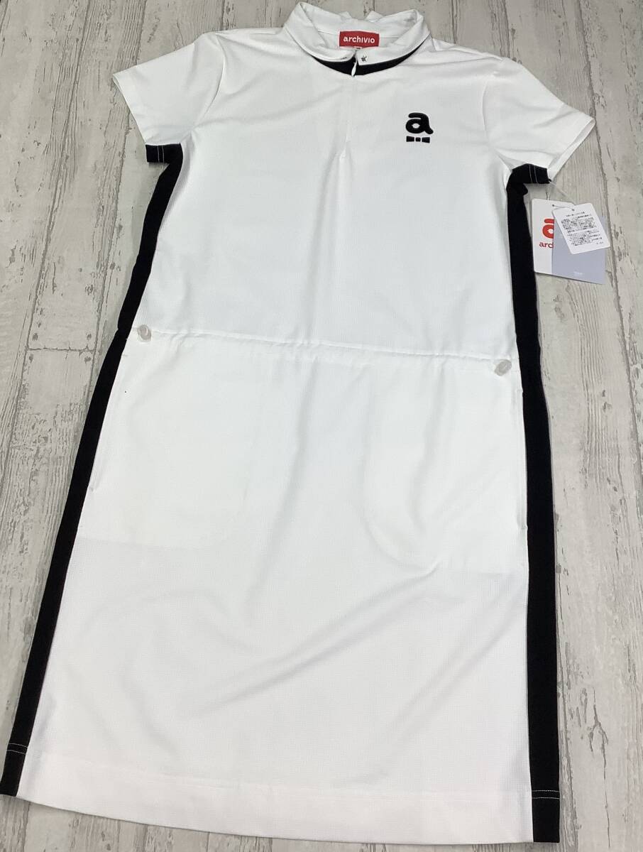 - 新品 ★36サイズ表示 archivioゴルフ かわいいワンピース レディースウェア 定価\47,300 白系 黒ラインアクセント