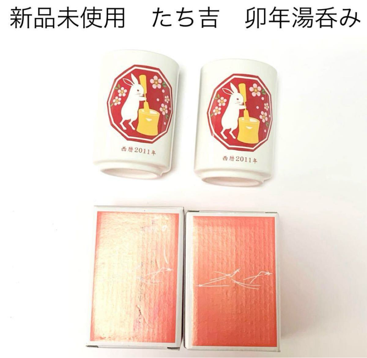 > 新品未使用 たち吉 ウサギ柄和風ゆのみ ペア 和食器 新生活 白 湯呑み 兎 湯飲み 卯年 陶器 耐熱 コップ