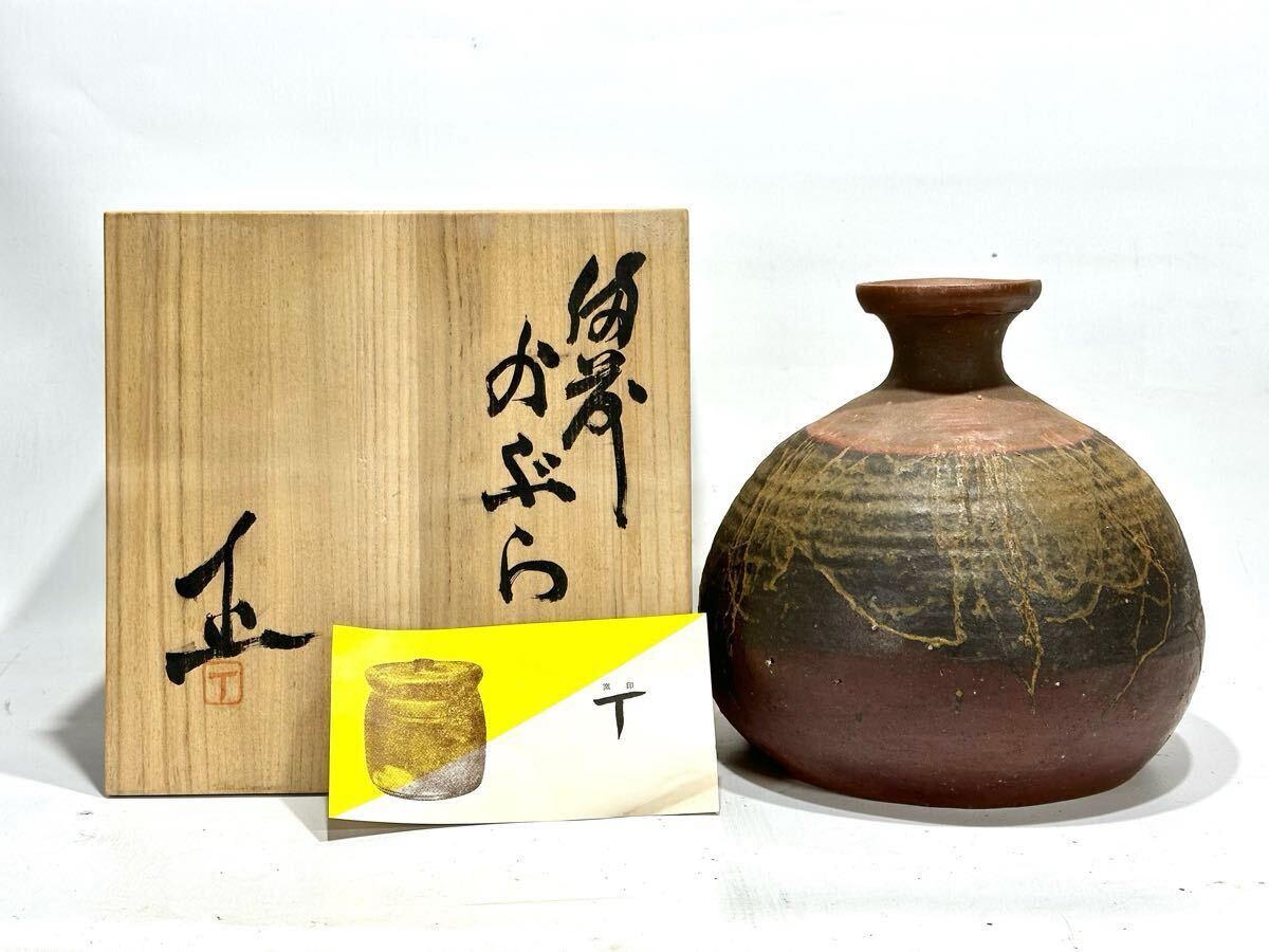 - 藤原正 かぶら 高24cm 備前焼 花入 蕪 徳利 共箱 栞