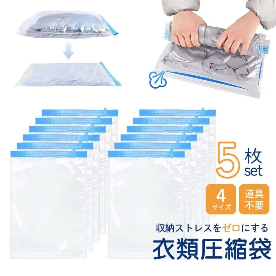 - 【4サイズから選択】【※購入後メッセージ下さい】圧縮袋 透明 5枚セット 全4サイズ タンス 枕 整理 旅行 ジップロック 必需品 万能