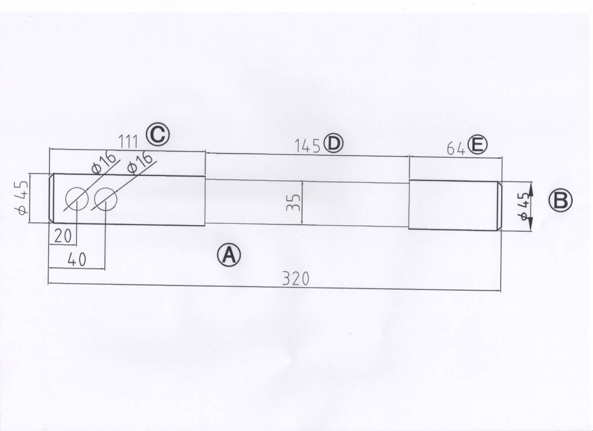 - NO 1994 Φ45用 全長320mm 中間φ35部分145mm バケットピン 2本セット