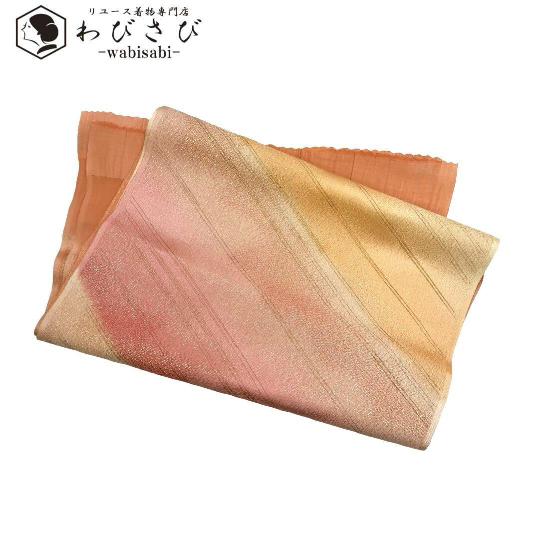 - 和装小物 帯揚げ 正絹 金通し 暈し 斜線模様 金彩洗朱色 C-5594 着物 きもの kimono 和服 和装 中古 リサイクル着物 【送料無料】
