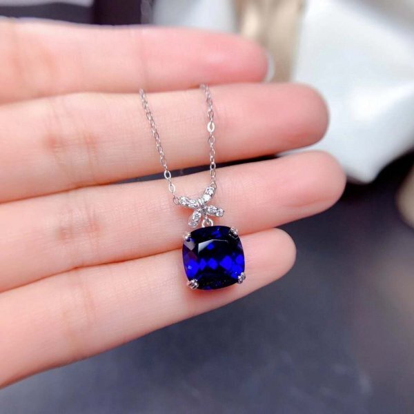 女性のためのナチュラルサファイアペンダントネックレス、10×10mm、925スターリングシルバー、高級ファッション