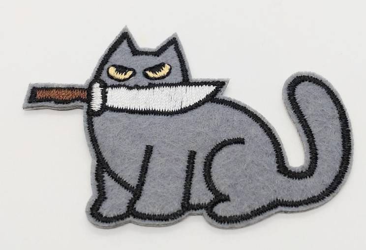 - 送料無料 猫 ねこ ネコ ナイフ アイロン のりつき 刺繍 ワッペン アップリケ アメリカン雑貨 スマアク