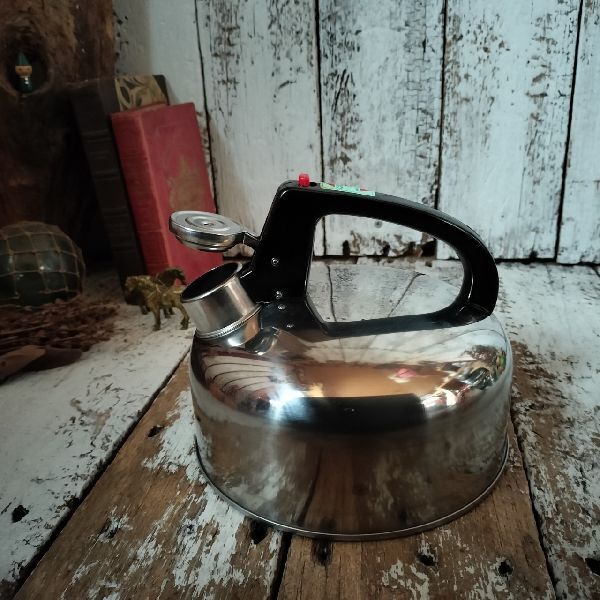 > 70-80s ヴィンテージ 未使用 昭和レトロ メタリックシルバー 笛吹き ケトル 2.0L やかん 薬缶 ヤカン キャンプ ビンテージ 古道具