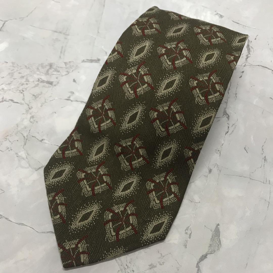 - ジョルジオアルマーニ ネクタイ 茶×白×赤 幾何学模様 絹 派手【n495】
