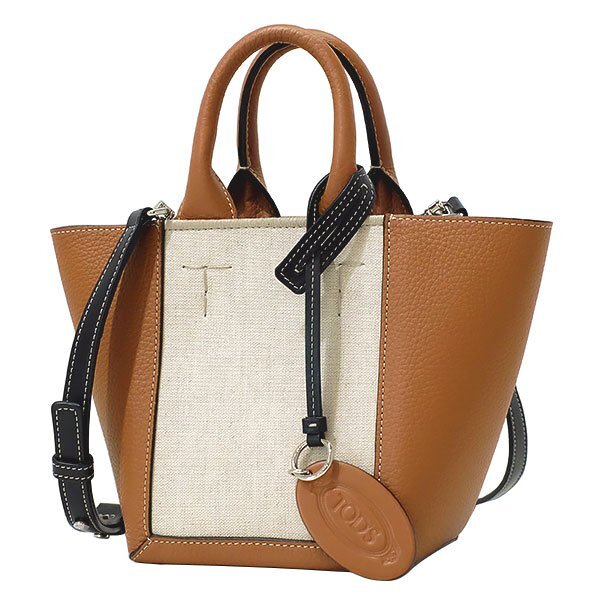 - 送料無料 本物 注目 TOD'S トッズ ダブルアップショッピングバックミニ レザー×リネンミックスキャンバス ベージュ×ブラウン レディース