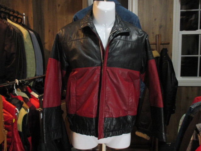 > 極美 国産 ヴィンテージ 黒×赤 レザージャケット ツートンカラー スポジャケ 牛革 ブルゾン ライダース クリーニング済み ROCKNROLL
