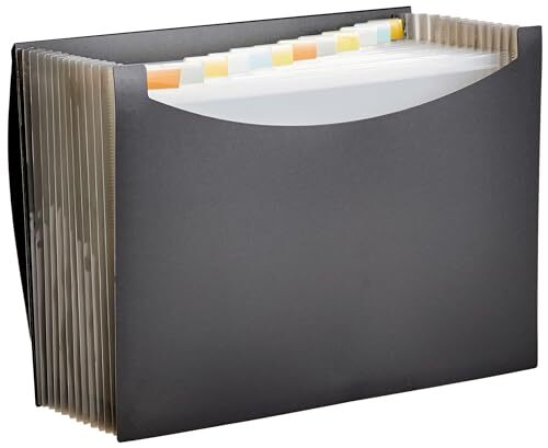 - ベーシック 書類ケース ファイルケース A4 書類収納 持ち運び 拡張式 区分けラベル付き 横13cm x 縦21cm ブラック