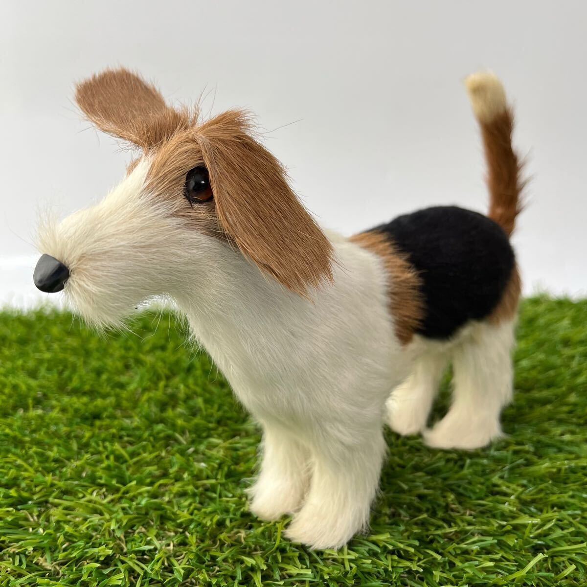 > (く1)ビーグルかフォックステリアかジャックラッセルテリアみたいなリアルな犬の置物 オブジェ リアル アンティーク 剥製風 アニマル