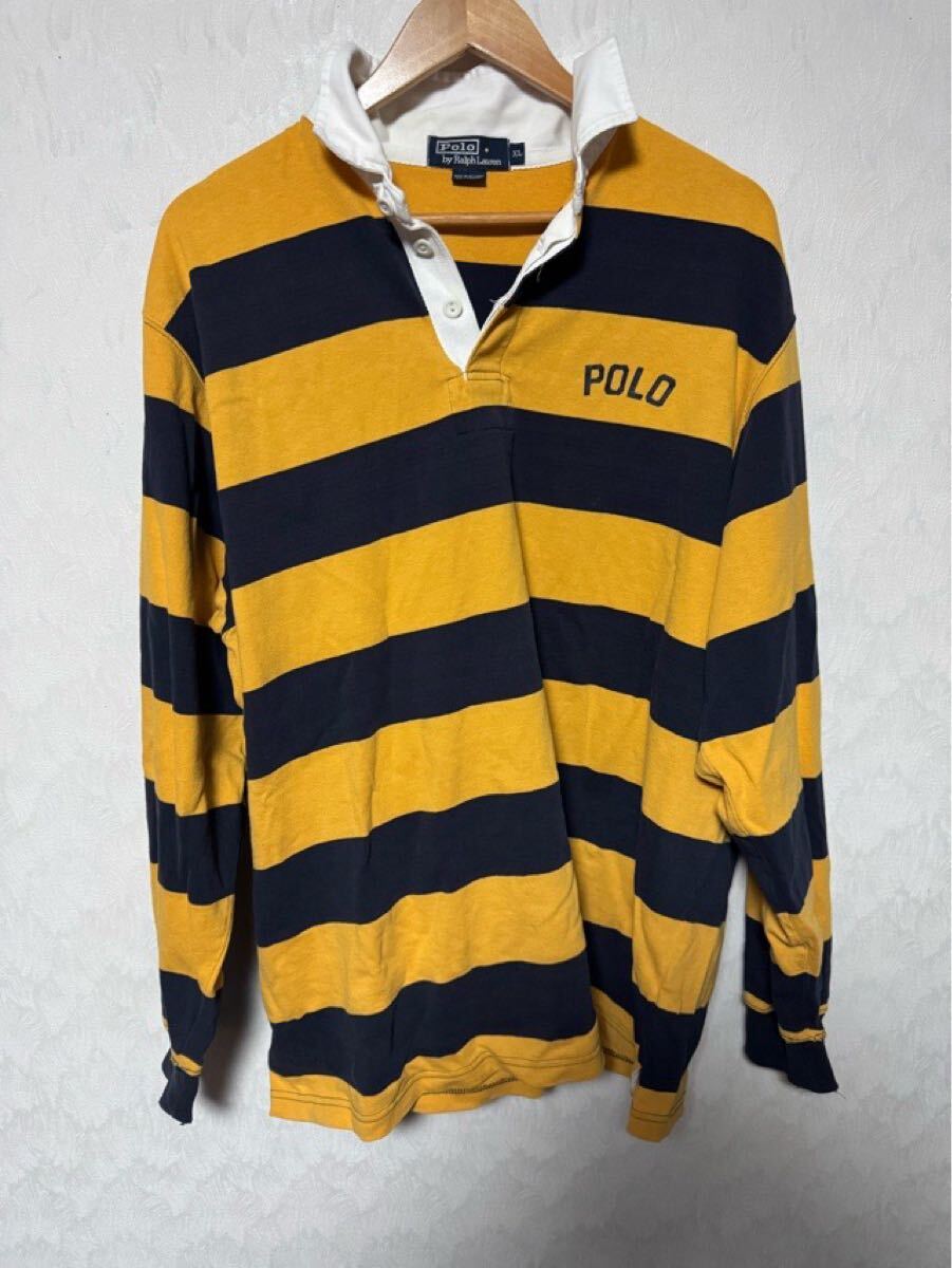 - POLO ポロラルフローレン ポロシャツ 太ボーダー XL イエロー ネイビー