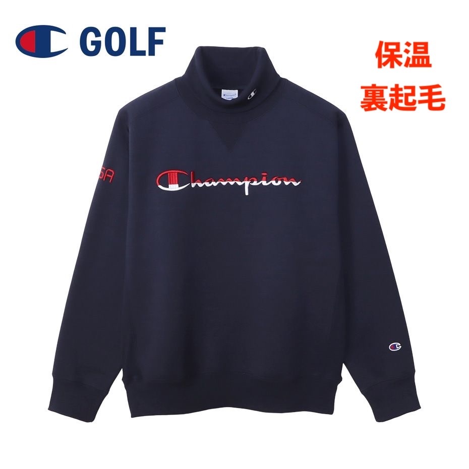 > ■【XL】秋冬 定価15,180円 チャンピオン GOLF 保温 裏起毛 タートルネック スウェットシャツ紺■