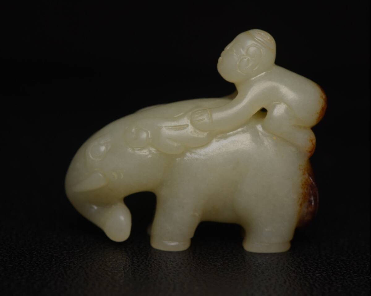 - ▽鴻▽ 和田玉製 細密彫 大象 置物 古賞物 中国古玩 中国古美術