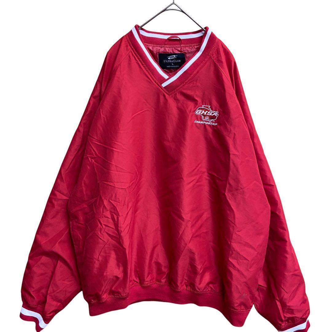 - ウルトラクラブ メンズナイロンプルオーバー Vネック リブ 赤 L【2656】
