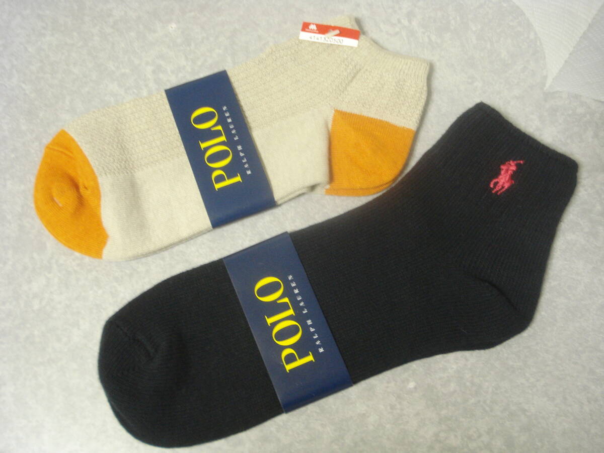 - ☆ ラルフローレン メンズ ショートソックス 2足☆ 黒 ブラック ベージュ オレンジ 25~27cm 紳士 ソックス 靴下