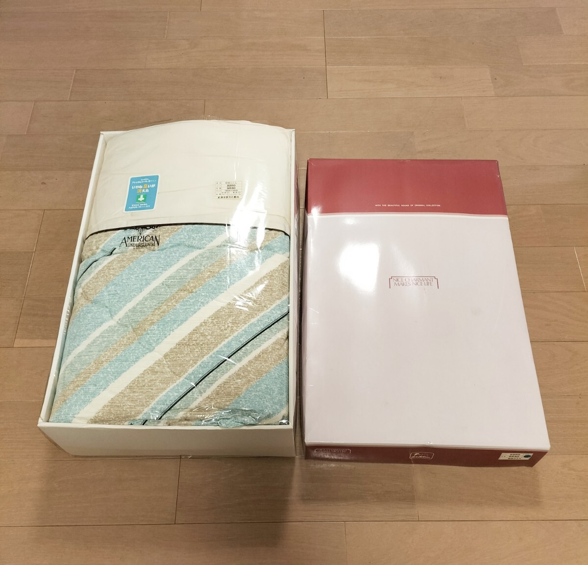 - シャルマン 肌掛布団 サイズ140×190センチ 綿100% ※シミあり 水色 肌フトン~いやな臭いが消えた テイジンの中綿使用