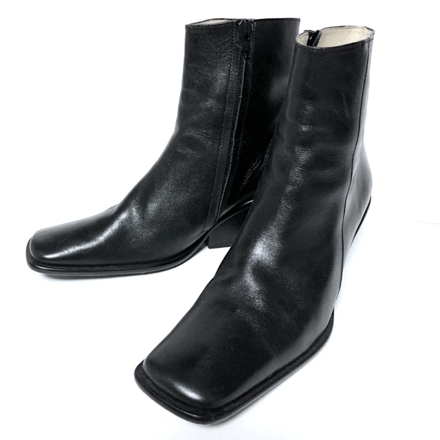 > 二点落札で送料無料!B048 UNTISHOLD アンチショルド Naty -5 Leather レザー ジップ ショートブーツ 38(25-25.5㎝)ブラック レディース