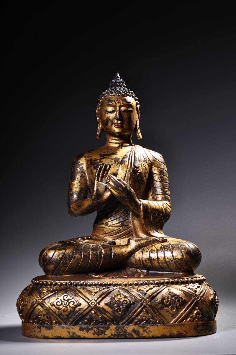 - ▽鴻▽ 銅製 泥金 釋迦牟尼像 置物 古賞物 中国古玩 中国古美術
