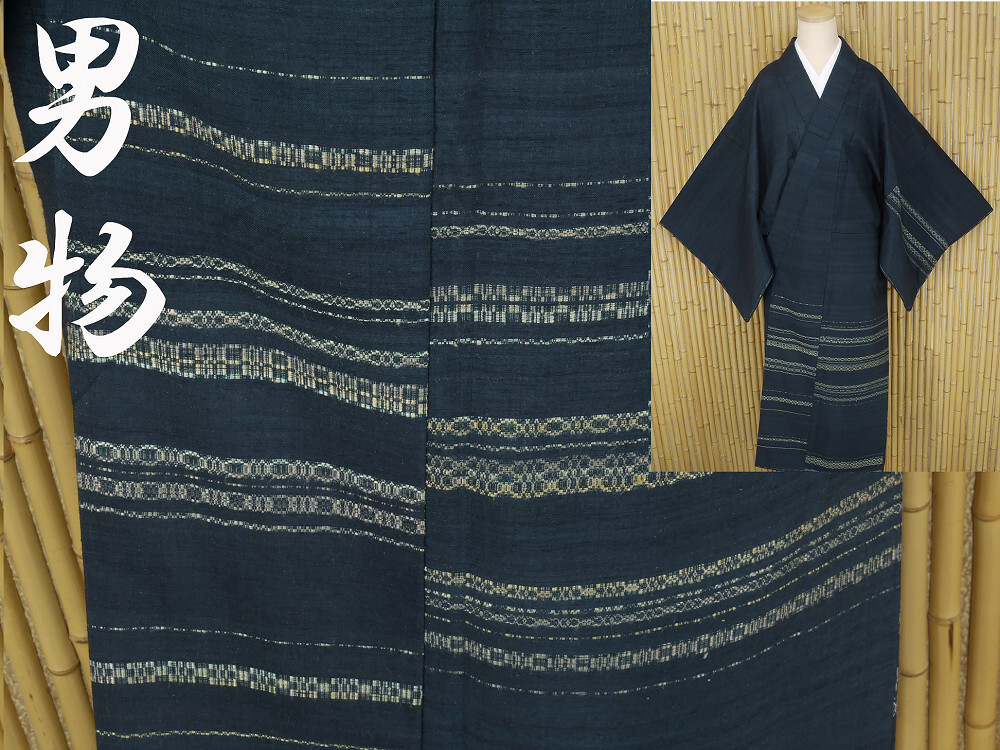 - 【京かんざし】472★男袷 長着 花織 紬「健勝苑謹製」躾糸付身丈131 cm裄丈69 cm★即決送料無料!