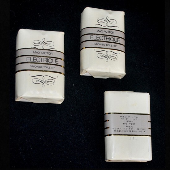 - ●2239● 昭和 固形石鹸コレクション ◆ 「 マックス ファクター エレクトリック SAVON DE TOILETTE 」3 個 ◆ 希少な置き古し品です。!