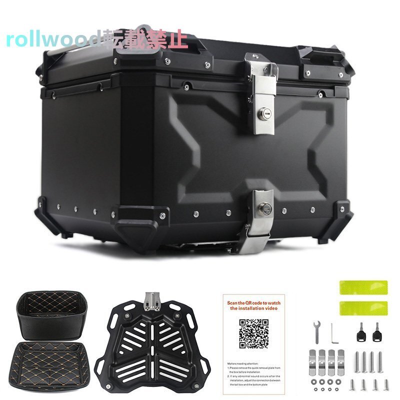 > リアボックス モノキーケース バイク用トップケース 取り付け金具付き 容量65L トップケース 収納ケース ハンドル付き 防水 鍵2本 ブラック