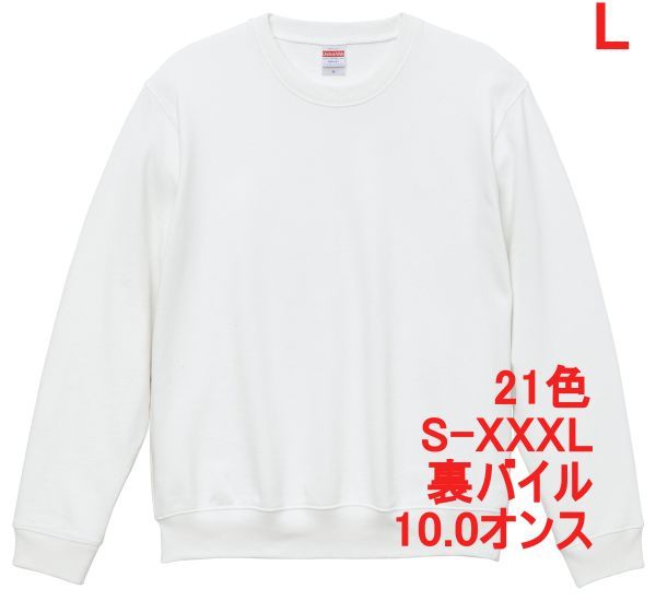 - スウェット L ホワイト トレーナー 10オンス 裏パイル 無地 定番 シンプル インナー 部屋着 普段着 丸首 クルーネック A635 白 白色 504401