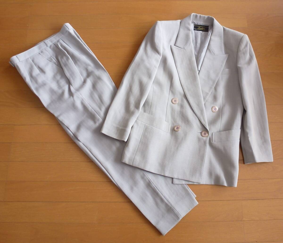 - Leilian レリアン パンツスーツ セットアップ ダブル ジャケット 9号 グレー イタリア生地 modesto bertoto 即決あり!