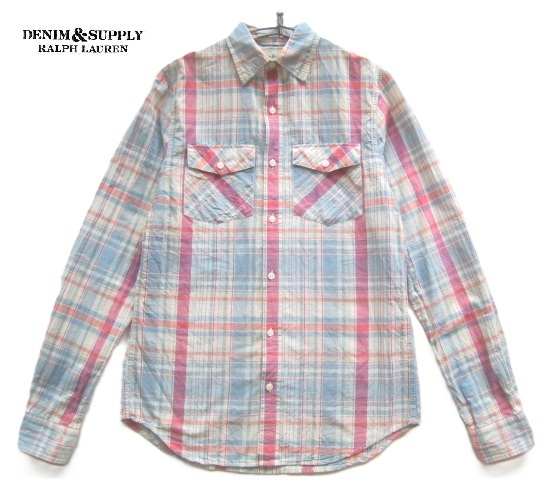 > 高級!!デニム&サプライ DENIM&SUPPLY RALPH LAUREN*ダブルポケット チェック柄長袖シャツ S ポロ ラルフローレン