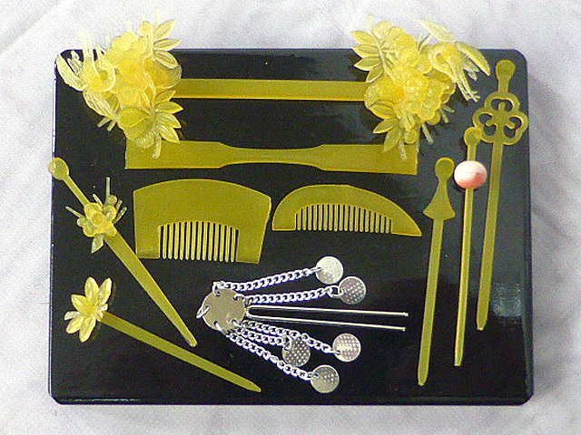 > A78 和人形 ドール用 へあーーアクセサリー かんざしセット べっ甲 シルバー 10点セット/オブジェ/ディスプレイ・250312