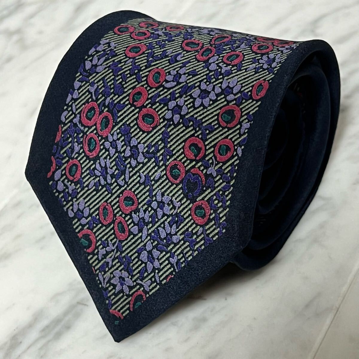 - 【美品】 999円~ ミラショーン ネクタイ ネイビー ワンポイントロゴ 総柄 (B7)