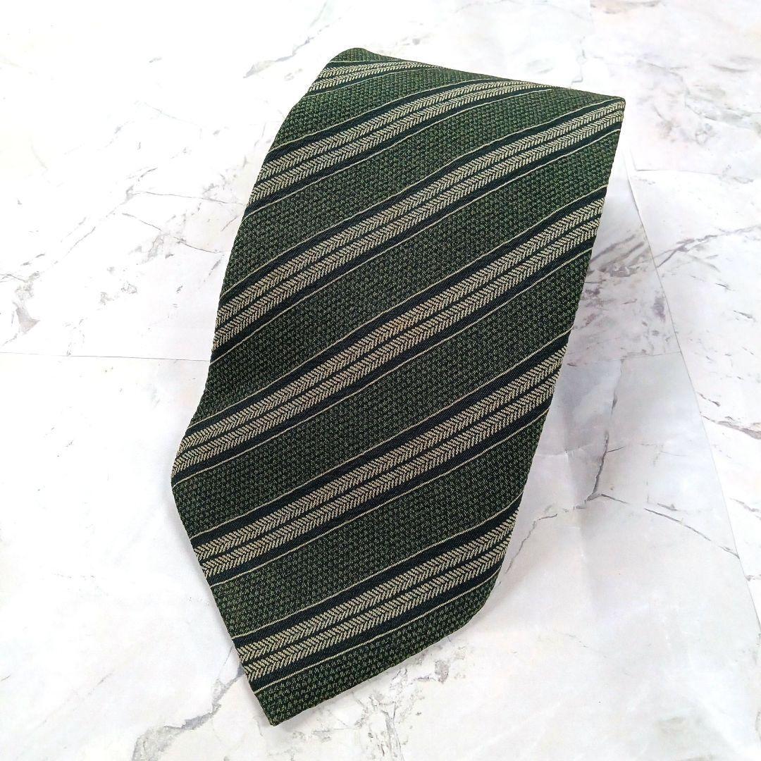 - アルマーニコレツォーニ ネクタイ 緑色 ストライプ柄 絹【n699】