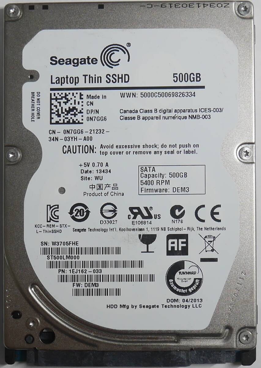 > 46時間 Seagate Laptop Thin SSHD ST500LM000 500GB_1EJ162/厚さ6.5mm/SATA/2.5inch HDD/不良セクタなし