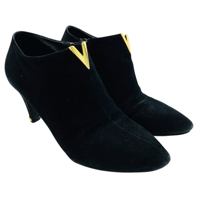 - ルイ ヴィトン ブーティ ショートブーツ シューズ ヒール サイドジップ スエード ブラック ゴールド金具 [サイズ 35(約22cm)]